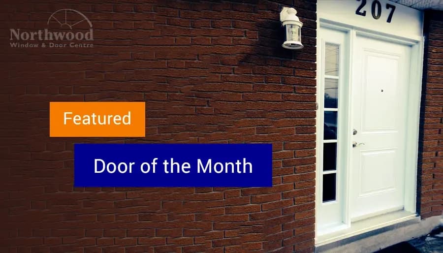 DoorsTodays feature door is a door with one sidelite manufactured by Entryguard doors. This door is in our standard colour of Polytex White. This is a new classic design with simulated divided lights in the sidelite to add a little texture to the look. We also choose to install a satin nickel door viewer for customer safety. Hardware for the door is a baldwin curve lever and deadbolt.